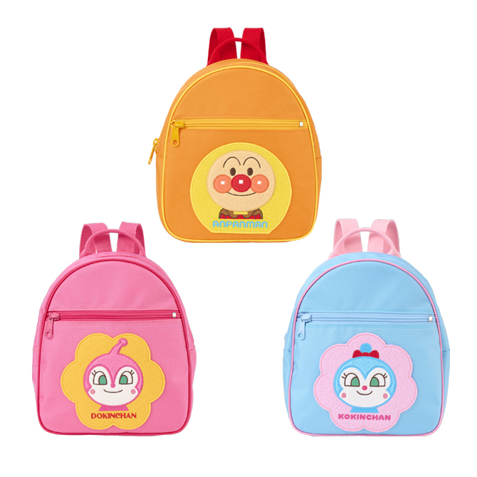 大きなお顔の刺繍が目を引くリュックだよ!アンパンマン・ドキンちゃん・コキンちゃんの3種類ビビットな色でお出かけも楽しくなるね。便利な前ポケット付きにっこりリュック価格:4,180円(税込)サイズ:約 縦23.5cm×横21cm×マチ10cm