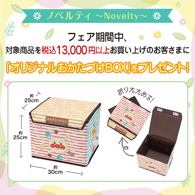 アンパンマンキッズコレクション【アーリーサマーコレクション】が2月6日(金)より開始!初夏らしいカラフルなデザインのお洋服が盛りだくさん☆期間中キッズコレクションの商品を13,000円(税込)以上お買上げのお客様に先着でオリジナルおかたづけBOXをプレゼント!※ノベルティは無くなり次第終了アーリーサマーコレクション期間:2月6日(金)~3月1日(日)