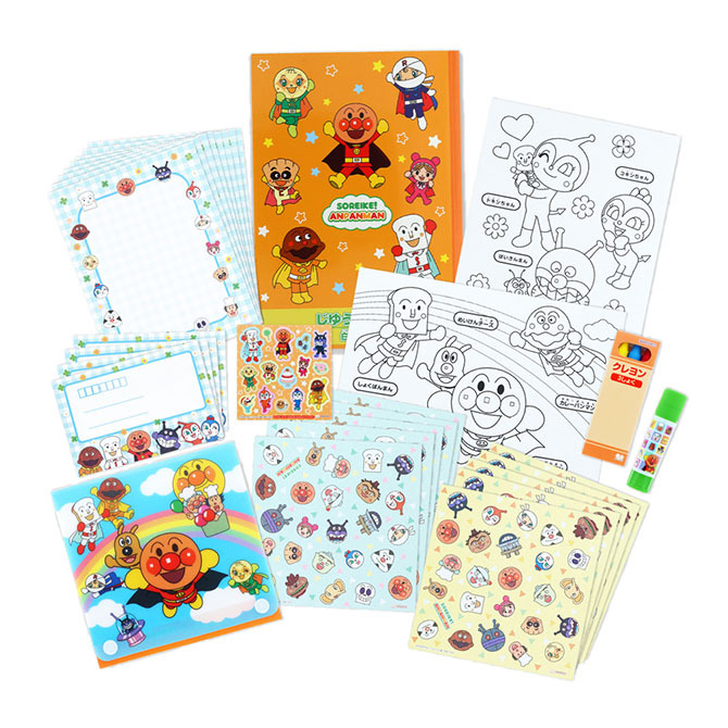 レターセットやちよがみまで、アンパンマンのステーショナリーがたくさん入っているよ!
