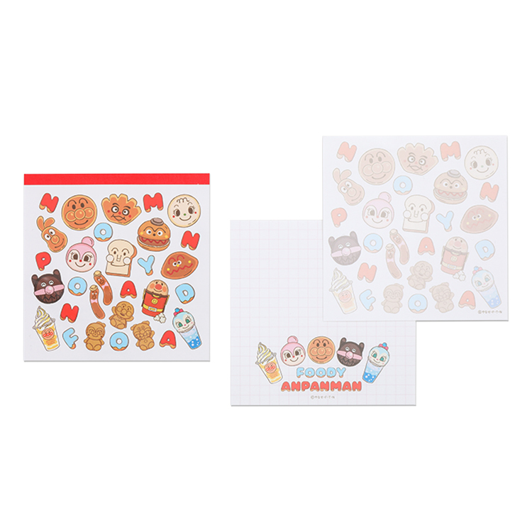 FOODY ANPANMANのスクエアメモが新登場!2柄50枚ずつ、計100枚入り。ちょっとしたメモやお手紙にもぴったり。―FOODY ANPANMAN―アンパンマンこどもミュージアム限定フードをグッズ化したシリーズスクエアメモ FOODY ANPANMAN価格:330円(税込)