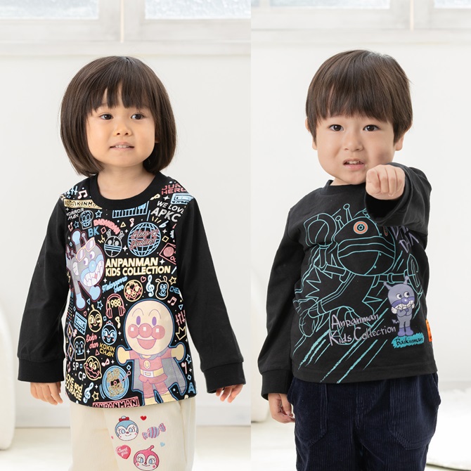 躍動感のあるだだんだんとばいきんまんがデザインされた長袖Tシャツが発売!!