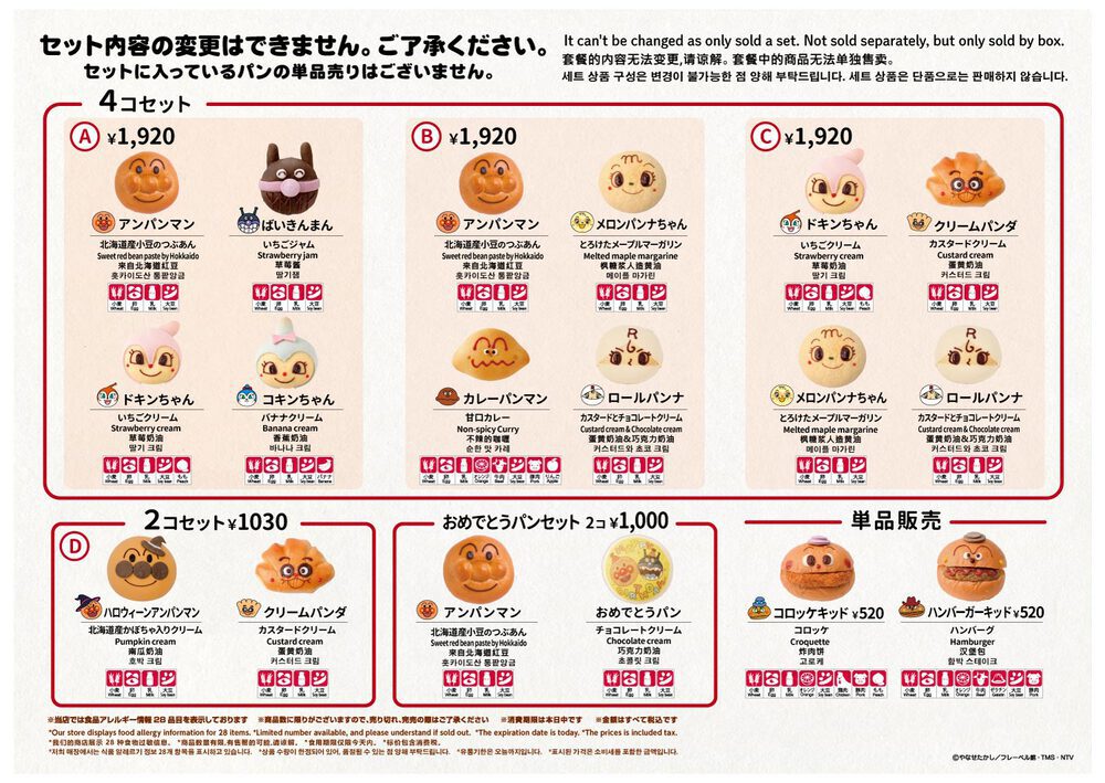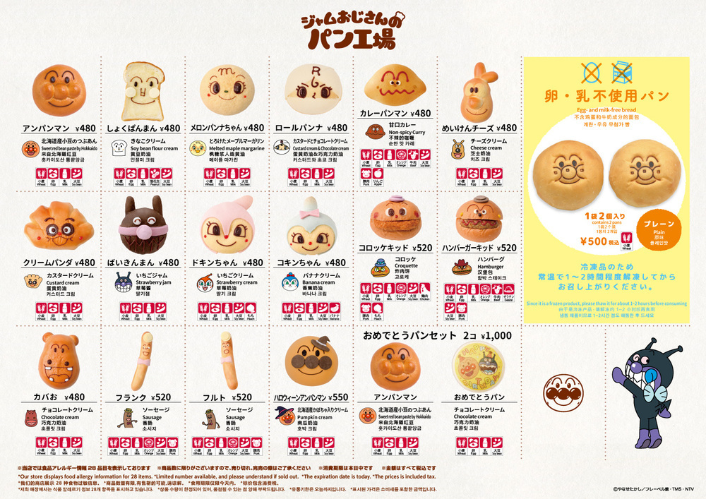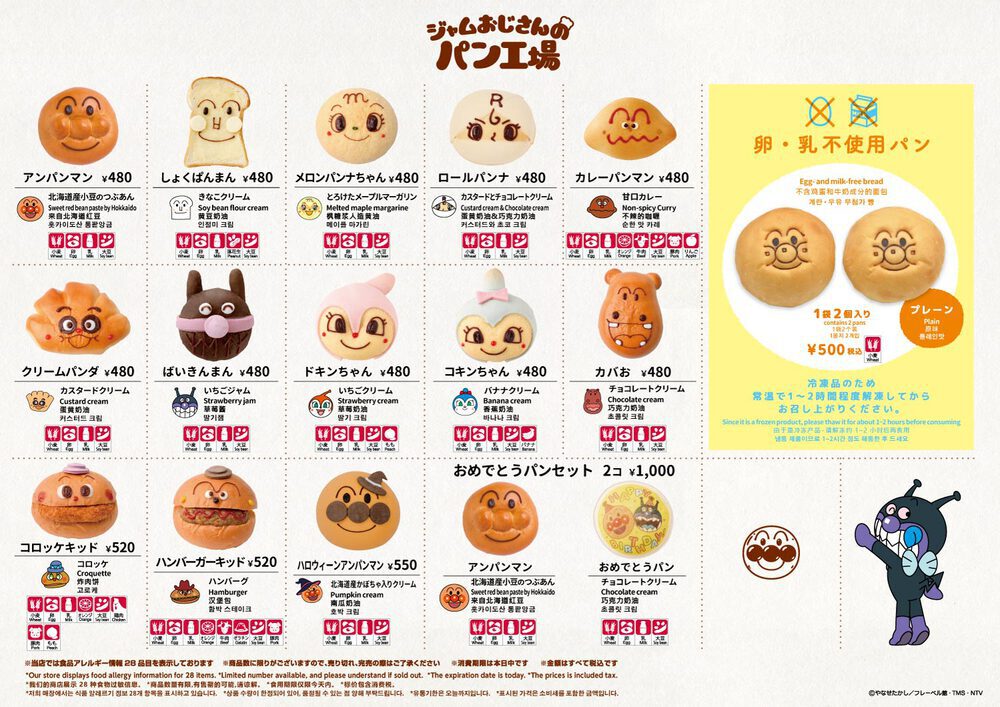 2025年10月1日~10月31日、ジャムおじさんのパン工場では、キャラクターパン販売を下記に変更します。