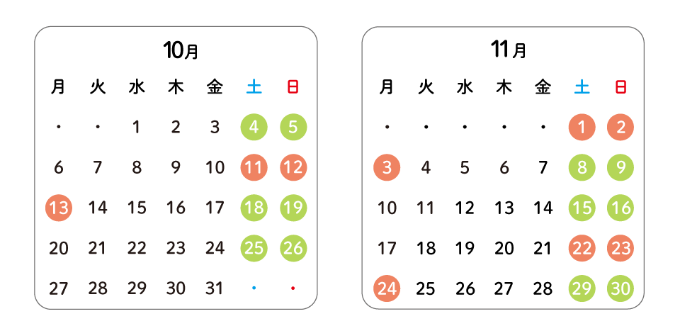 無色:2,200円 ●:2,400円 ●:2,600円 ●:休館日 ※價格均含稅