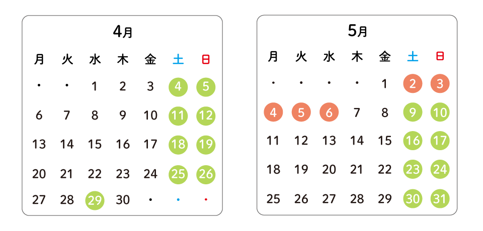 色なし:2,200円 ●:2,400円 ●:2,600円 ●:休館日 ※価格はすべて税込