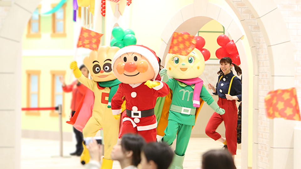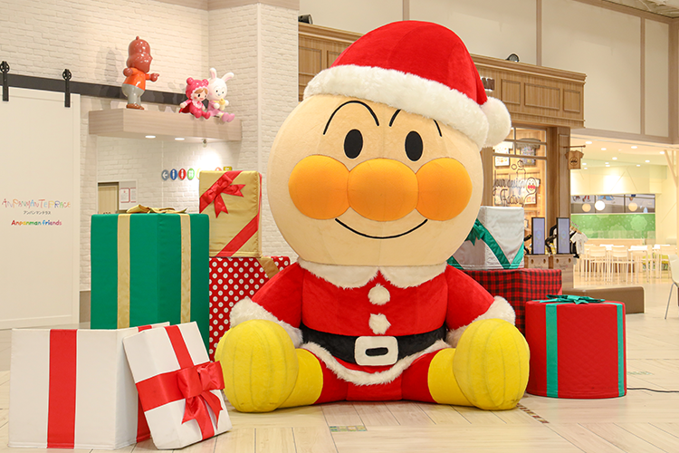 サンタやトナカイなどのクリスマス衣装を着たアンパンマンたちが